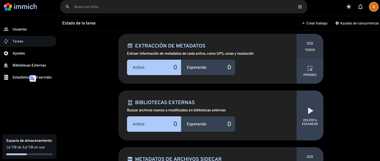Una vez comienza el proceso el tiempo va a depender de la cantidad de fotos que se tengan que procesar pero siempre será más rápido haciéndolo así pues en mi caso el portátil es mucho más potente que el nuc, la raspberry o lo que tengáis en casa haciendo de servidor.